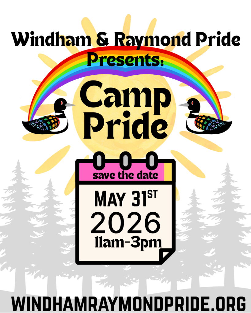Our Mission: Windham & Raymond Pride will provide an inclusive and welcoming space for queer people and allies, living in the Lakes Region, to celebrate our existence and unite as a community!